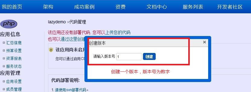接著點擊應用列表http://sae.sina.com.cn/?m=myapp 選取你剛創(chuàng)建的應用。選擇左側(cè)“代碼管理”,如下圖所示: