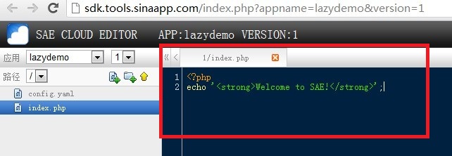 在以下紅色標示的區(qū)域內(nèi)編輯你的代碼就可以使用SAE了。