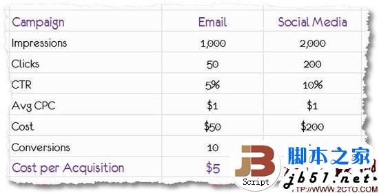 CPA應作為分析報告中的最佳度量之一,其中展示次數(shù)(Impressions)、點擊數(shù)(Clicks)、點擊率(CTR)、平均每次點擊成本(Avg CPC)、轉(zhuǎn)換(Conversions)等度量數(shù)據(jù)均可通過Google Analytics、Omniture等網(wǎng)站分析工具獲得,但是成本(Cost)需要自行核算。