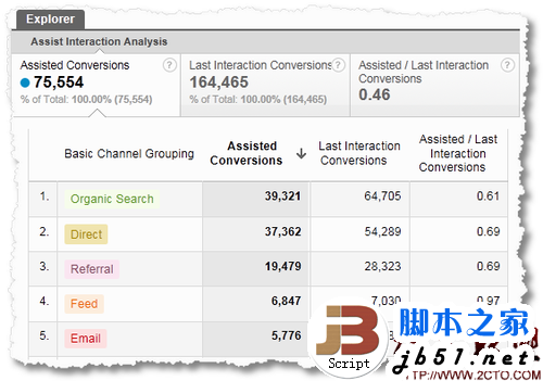 以上案例中可以發(fā)現(xiàn),如果我們沒有做渠道組合優(yōu)化(而實際上需要),可以看出Email渠道的數(shù)據(jù)(1.18 輔助轉(zhuǎn)化次數(shù)/最終互動轉(zhuǎn)化次數(shù)),在暗示我們與Organic Search(0.61)相比,應該為Email渠道制定營銷優(yōu)化與預估策略。