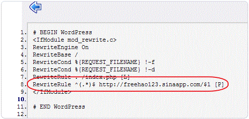 RewriteRule ^(.*)$ http://你的新浪SAE網(wǎng)址.com/$1 </p> <p>