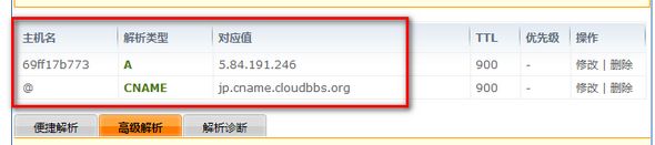 十、在域名注冊(cè)商的后臺(tái)進(jìn)行上面的解析操作,如下圖: