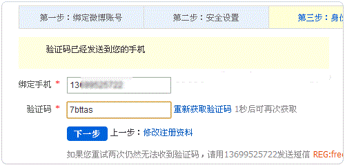 3、點(diǎn)擊下一步,將你的手機(jī)上收到的驗(yàn)證碼填入進(jìn)去,如下圖: