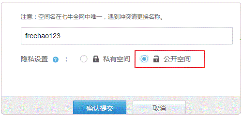 4、為空間設置一個名稱,空間類型選擇為“公開空間”,“私有空間”是需要驗證密碼才可以訪問的。