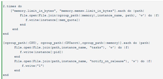 接著將實例的進程ID寫入各個子系統(tǒng)的tasks文件中,注意到每個子模塊的notify_on_release都設(shè)置為1,這是告訴cgroup,如果應(yīng)用消耗的資源超過限制,就kill掉進程。Warden中寫了個OomNotifier服務(wù)來監(jiān)控內(nèi)存的消耗情況,然后做具體操作。個人覺得太復(fù)雜,可能OomNotifier有更“溫柔”的處理方法或有更多邏輯處理。但是目前來看,OomNotifier 只是做了kill操作。