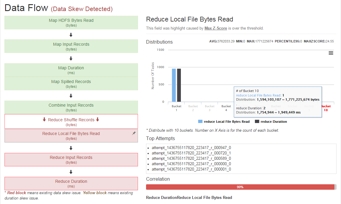除了對日常集群指標監(jiān)控外,Eagle集成了Job Performance Analyzer(JPA),通過實時監(jiān)控Hadoop 平臺上的作業(yè)當前和歷史執(zhí)行狀態(tài),提供多維度不同粒度的性能分析,支持多種異常預(yù)警和性能警告,比如作業(yè)運行時間過長、讀寫過慢、數(shù)據(jù)傾斜、失敗任務(wù)比率過多等,可有效在作業(yè)無法滿足SLA之前提供預(yù)警和性能建議。