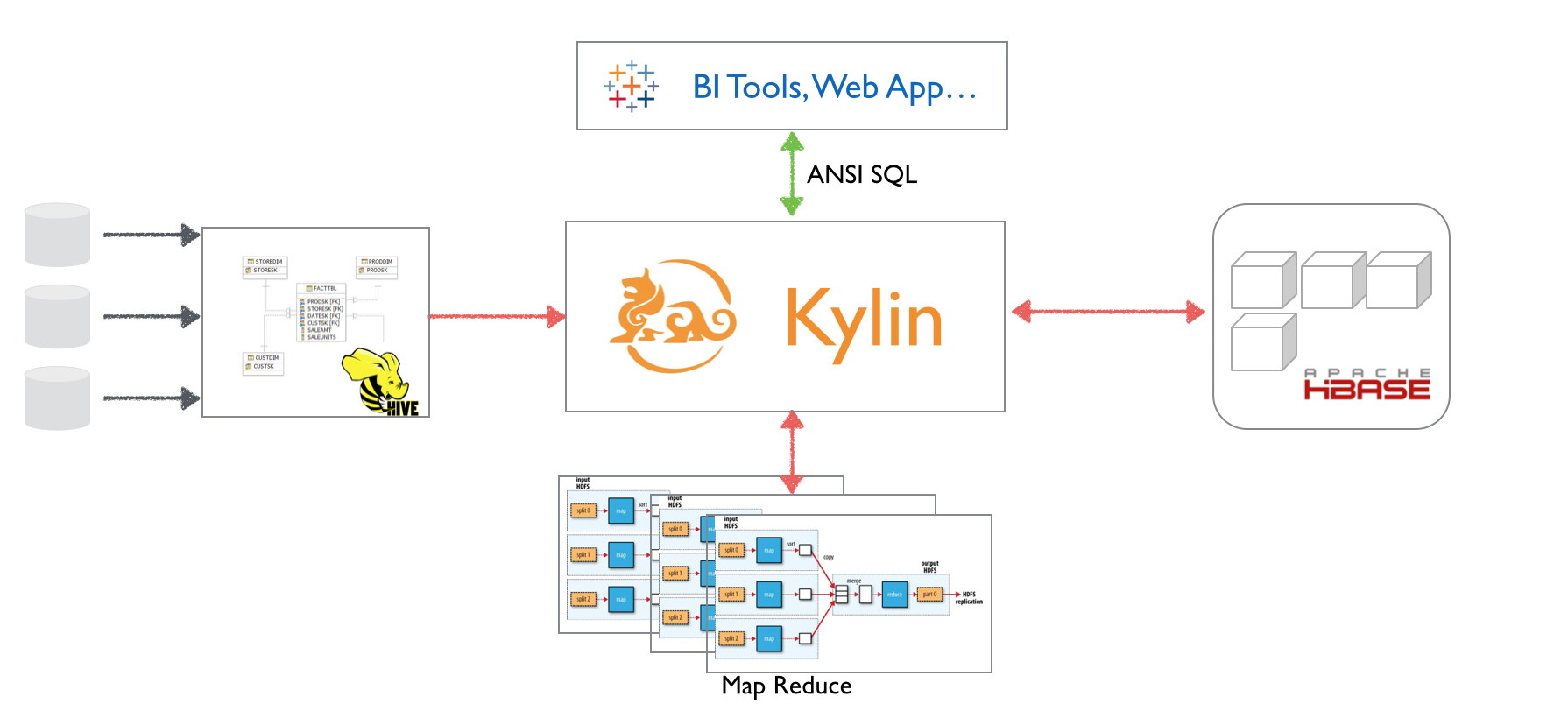當數(shù)據(jù)規(guī)模隨著用戶群體的多樣化拓展而不斷增長時,我們的用戶,比如分析師與業(yè)務(wù)部門,希望能在保持最低延遲水平的前提下繼續(xù)使用自己所熟悉的工具和方式來訪問和分析存儲于Hadoop之上的超大規(guī)模數(shù)據(jù)集,并且希望數(shù)據(jù)的獲取、處理、存儲和分析同時在Hadoop集群上完成,而無需再將數(shù)據(jù)從一個數(shù)據(jù)源遷移到另外一個數(shù)據(jù)源。在研究和評估了多種開源及商業(yè)產(chǎn)品后,eBay中國研發(fā)中心于2013年中正式立項啟動了OLAP on Hadoop項目,并在2014年10月開源,之后貢獻給了Apache基金會,現(xiàn)在正在孵化階段。