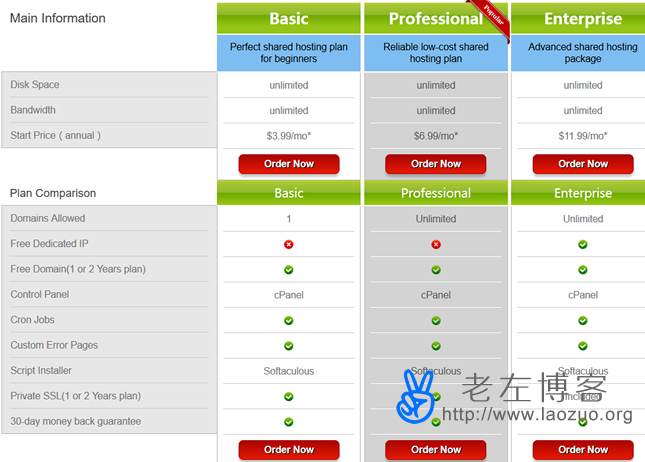 Dudrop的Linux共享主機和Windows主機的套餐方案價格是一樣的,Basic主機是3.99美元/月,Professional高性價比套餐是6.99美元/月,而Enterprise主機則是11.99美元/月。Enterprise高級主機免費贈送獨立IP。據悉,目前Dudrop推出Basic半價優(yōu)惠活動:使用優(yōu)惠碼Basic2015購買Dudrop的Basic主機方案,可以享受半價優(yōu)惠。