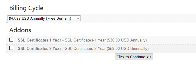 檢查域名是否被注冊或者綁定后,我們需要選擇付費周期。