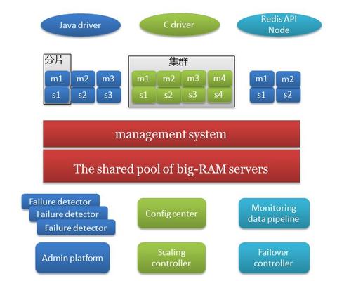 這個系統(tǒng)從部署結(jié)構(gòu)來講,是單個物理服務(wù)器、多實力的結(jié)構(gòu),任何大內(nèi)存物理servers上都會部署多個內(nèi)存,好處是便于流量監(jiān)控等,但是給業(yè)務(wù)和監(jiān)控帶來很多復(fù)雜性。對行業(yè)來說目前還是比較合理,故障的檢測與切換,擴容的管理、升級、監(jiān)控等都是獨立的模塊。存儲的servers是復(fù)用原來redis網(wǎng)絡(luò)編程的框架,但是復(fù)制的協(xié)議、存儲的引擎等各方面都是自己來開發(fā)。