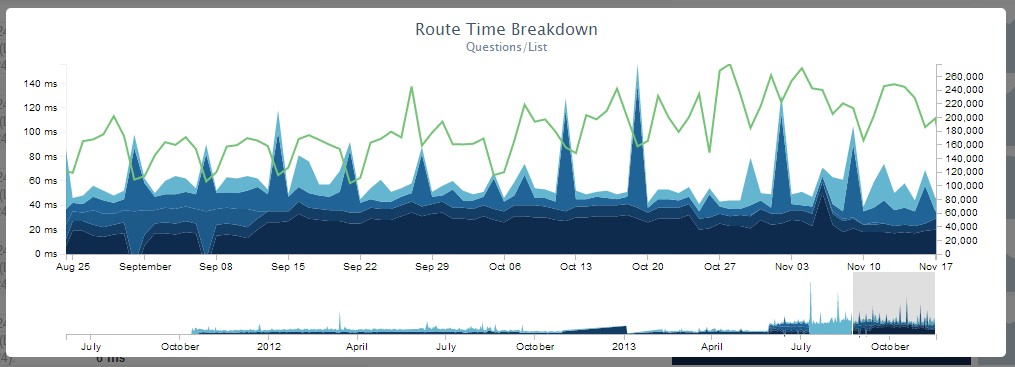 Home page: 65 ms (100萬次點(diǎn)擊) (這對我們來說已經(jīng)很慢了,Kevin Montrose正在著手修復(fù)這個(gè)問題)