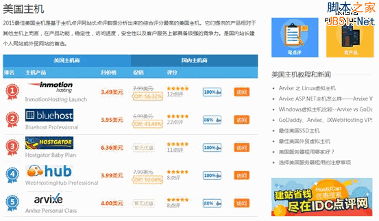 IDC點評網(wǎng)列出了眾多的美國主機(jī)商,你可以根據(jù)主機(jī)類型,操作系統(tǒng),開發(fā)腳本及框架來搜索相應(yīng)的美國主機(jī)。IDC點評網(wǎng)搜索結(jié)果對主機(jī)產(chǎn)品、點評數(shù)據(jù)、優(yōu)缺點分析、對比、購買攻略等信息即時展示,方便了解。