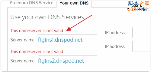 1、一個(gè)問題是如果選擇使用自定義DNS時(shí)(一般我們會(huì)用國(guó)內(nèi)的DNSPOD),會(huì)出現(xiàn)NS服務(wù)器地址無效的問題。