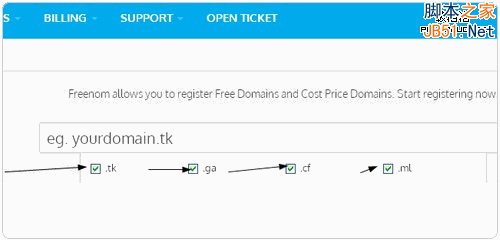 2、進(jìn)入Freenom官方網(wǎng)站后,輸入你想要注冊(cè)的域名,然后選擇域名后綴:.TK、.CF、.ML、.GA