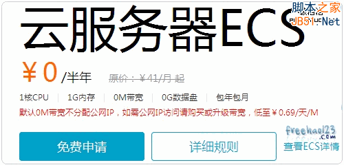 阿里云ECS其實也是類似于亞馬遜AWS那樣的云服務,去年開始阿里云ECS推出了免費試用活動,不過這個免費試用活動比起亞馬遜AWS,微軟Windows Azure等這些免費試用就大大折扣了,免費的VPS沒有外網,做做VPS體驗還差不多,如需帶寬流量則需要花錢購買。