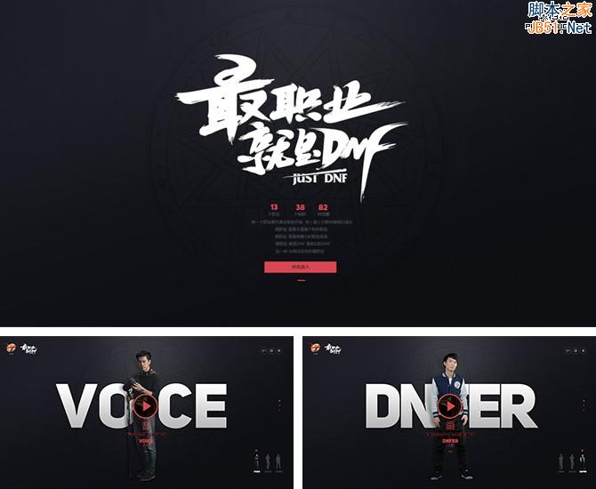 例如:“最職業(yè)DNF”主題站,為打造最具豐富并個性差異職業(yè)體系,采用精致的大標題設計,結合簡單的背景,重點突出又不失美觀。