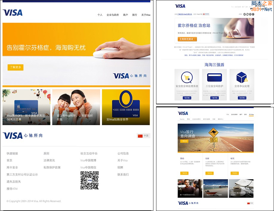 VISA是一個信用卡品牌, 深藍色傳達和平安全的品牌形象,黃色能讓用戶產(chǎn)生興奮幸福感。另外藍色降低明度后再和黃色搭配,對比鮮明之余還能緩和視覺疲勞。