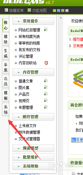 2、進入后臺,找到菜單欄最下面的---系統(tǒng),點擊進入系統(tǒng)一欄