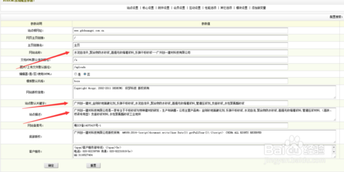 4、這個界面就是設置你網站的一些基本信息,大家可以先弄好網站的一些關鍵字,添加到網站名稱---站點默認關鍵字----站點描述,這就是站點的關鍵詞了。圖例僅供參考