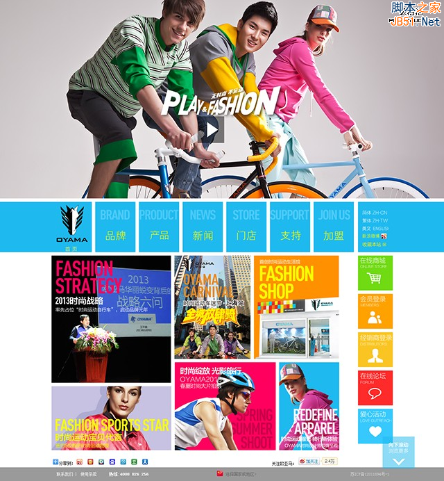 1、第一個(gè)案例是筆者為OYAMA定制的官方網(wǎng)站。從首屏設(shè)計(jì)上就不難看出網(wǎng)站需要表現(xiàn)出一種積極向上,充滿朝氣的氛圍。因此設(shè)計(jì)師很巧妙的將人物元素融入METRO的設(shè)計(jì)風(fēng)格,這樣既能避免色彩多造成的視覺疲勞,也能順勢利用豐富亮麗的色彩,讓網(wǎng)站看起來更加生動(dòng)有活力。