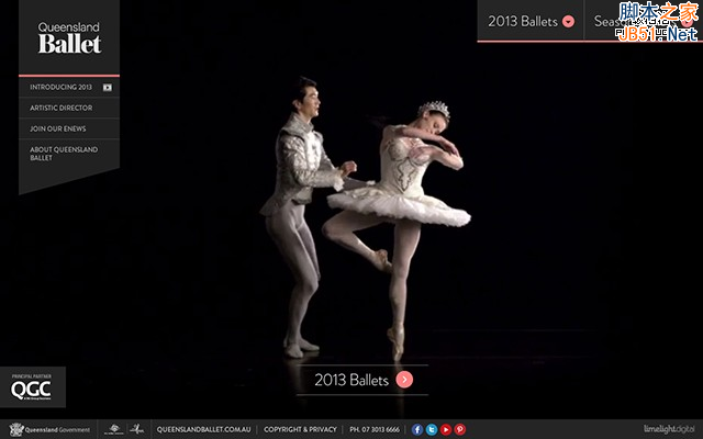 2、Ballet與普通的人物背景網(wǎng)頁設(shè)計(jì)不同,在人物的處理上沒有使用高清的大圖,而是故意做了充滿朦朧感的模糊處理,搭配經(jīng)典的黑色,讓網(wǎng)頁多了一層神秘感。為了掩蓋大量的留白可能會帶來的單調(diào),設(shè)計(jì)師用人物的大幅度動(dòng)作讓頁面看起來更充實(shí)。
