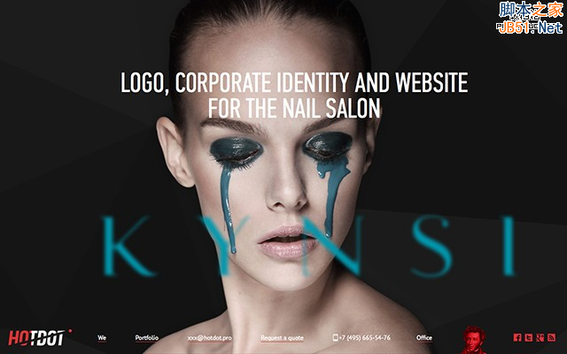 3、HotDot的網(wǎng)站背景風(fēng)格似乎很符合現(xiàn)代設(shè)計(jì)師的口味。背景中的人物使用亮點(diǎn)不僅僅只在于獨(dú)特?fù)屟鄣膴y容上,更在于人物的視線方向上。從整個(gè)網(wǎng)站的布局上來看,用戶體驗(yàn)并不是很理想,導(dǎo)航在首屏的底部,而且字體和顏色也很不利于閱讀。所以,設(shè)計(jì)師利用人物的視線,將用戶的視線帶到了底部導(dǎo)航部分,很大程度的彌補(bǔ)了這一不足。