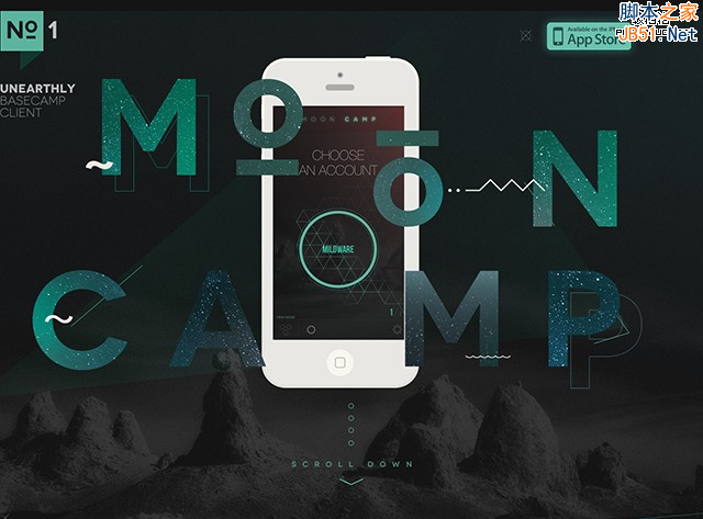 4、Moon Camp徹底把文字和圖片混合在一起。這種做法成功與否不僅取決于整體頁(yè)面的布局,色彩的搭配也是個(gè)很關(guān)鍵的因素。網(wǎng)頁(yè)色調(diào)屬于昏暗系,所以設(shè)計(jì)師選擇了星空色作為字體的顏色,與網(wǎng)站風(fēng)格吻合,文字的不規(guī)則排列也讓網(wǎng)站多了一份神秘感。