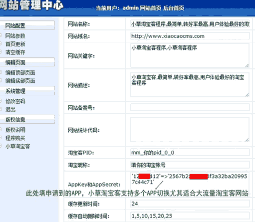 我們準(zhǔn)備好1-2個(gè)空間,PHP、ASP都行,再準(zhǔn)備一個(gè)域名,把小草淘寶客程序傳到空間就可以在后臺設(shè)置了。接下來就是把申請好的APP填入后臺,點(diǎn)確定即可,所有的網(wǎng)站圖片都是調(diào)用淘寶商品數(shù)據(jù)。如果你的網(wǎng)站流量非常大,就有必要使用多個(gè)淘寶APPKey。