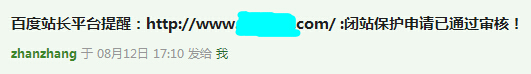 2014年8月11日接到空間商通知,因為網(wǎng)站備案號被注銷,網(wǎng)站被關(guān)閉。晴天霹靂!想了很久才反應(yīng)過來,一年前搞了快速備案,換空間的時候一直沒有改接入,所以才被注銷了。為了能快速打開網(wǎng)站,我只好再次找快速備案的渠道。正好又遇到周末,預(yù)估備案下來要5天左右,這時只能選擇百度的閉站保護,否則肯定會被降權(quán)的。