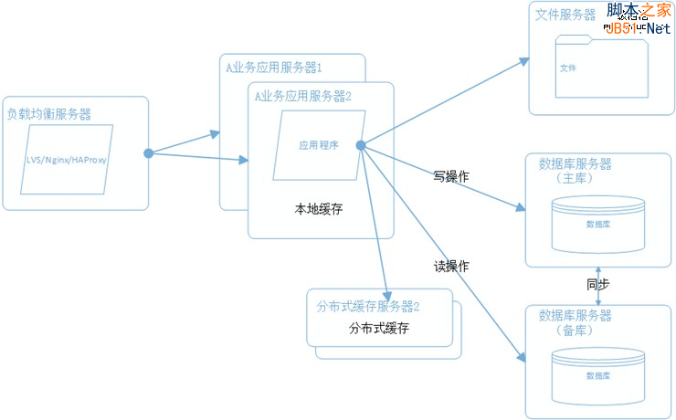 隨著業(yè)務(wù)的擴(kuò)展,一臺(tái)服務(wù)器已經(jīng)不能滿足性能需求,故將應(yīng)用程序、數(shù)據(jù)庫(kù)、文件各自部署在獨(dú)立的服務(wù)器上,并且根據(jù)服務(wù)器的用途配置不同的硬件,達(dá)到最佳的性能效果。