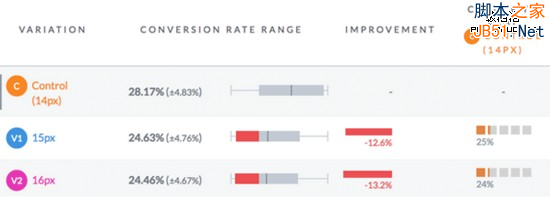 這次試驗讓我知道,不論分組測試哪種試驗,結(jié)果都會告訴你:對某些人奏效的事情未必對其他人奏效。對我們的博客使用的字體,或是發(fā)表的文章來說,14px的字體可能是個很好的選擇。