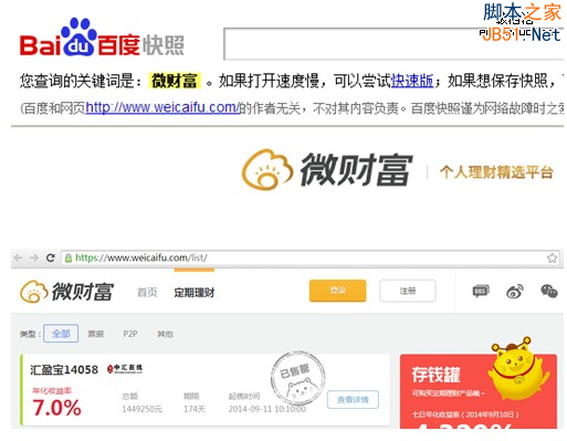 2,通過user-agent判斷來訪者,將Baiduspider定向到http頁面,普通用戶通過百度搜索引擎訪問該頁面時,通過301重定向至相應的https頁面。如圖所示,上圖為百度收錄的http版本,下圖為用戶點擊后會自動跳入https版本。