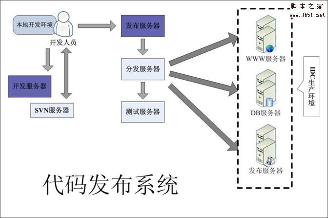 1) 生產(chǎn)環(huán)境的服務(wù)器以虛擬主機方式提供服務(wù),不需要開發(fā)人員介入維護和直接操作,提供發(fā)布系統(tǒng)可以實現(xiàn)不需要登陸服務(wù)器就能把程序分發(fā)到目標(biāo)服務(wù)器。