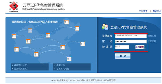 1、請?jiān)L問ba.hichina.com,登錄萬網(wǎng)代備案系統(tǒng)