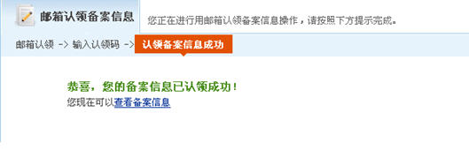 第3步:備案信息通過郵箱認(rèn)領(lǐng)成功;