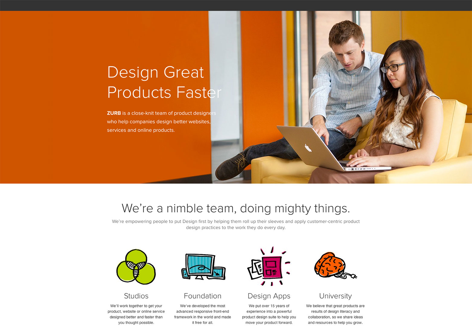 Zurb是家網(wǎng)頁設(shè)計公司,他們網(wǎng)站也體現(xiàn)了留白如何能突出色彩。它的特點是主頁頂部單一的純色和不同頁面的彩色圖標(就在虛線附近)。除了極少的顏色使用外,首頁的整體設(shè)計以留白為主。