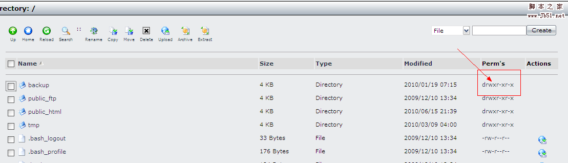 3、單擊你要修改的目錄或文件的Perm’s那一列改變權(quán)限