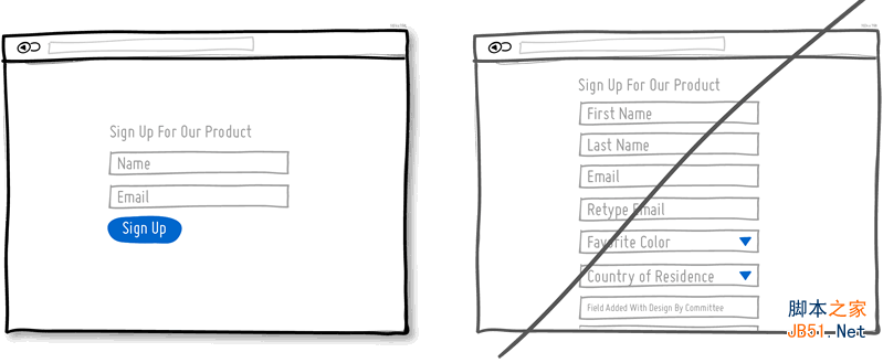 直接將注冊表單呈現(xiàn)在landing頁面當(dāng)中可以帶來諸多好處。首先,我們可以從流程當(dāng)中節(jié)省出一步,減少一個多余的頁面,讓用戶更省時。第二,直接將各表單字段呈現(xiàn)在這里,用戶就能對注冊流程的長度有一個明確的認(rèn)知。這種做法的前提是你的表單確實足夠短;當(dāng)然,你的表單也應(yīng)該足夠短,這應(yīng)該是你的設(shè)計目標(biāo)之一。