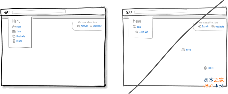這是提升可用性的基本方法之一。我們都知道,刀和叉,打開和保存,這些東西應(yīng)該被放的更近一些。具有關(guān)聯(lián)性的要素在位置上應(yīng)該更緊密,以體現(xiàn)邏輯上的相關(guān)性,降低界面整體的認(rèn)知負(fù)荷。在極其有限的會話時間內(nèi)再浪費時間來尋找內(nèi)容和功能,這對于用戶來說可不是有意思的事。