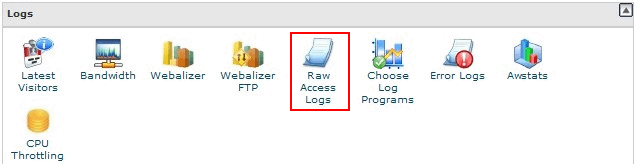 不同主機使用的面板不太一樣,所以查看原始訪問日志的方法也不太一樣,但是日志記錄的格式都是一樣的,具體查看原始訪問日志的方法請咨詢相關主機客服。下面是cPanel面板,通過點擊紅色方框中的按鈕,接著選擇你的網(wǎng)站域名,即可下載原始訪問日志,使用文本編輯器打開即可查看: