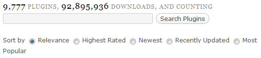 當(dāng)網(wǎng)站的平均瀏覽搜索結(jié)果頁面數(shù)偏高時,我們需要關(guān)注下是不是站內(nèi)搜索的結(jié)果排序存在問題。我們可以看到很多網(wǎng)站的搜索結(jié)果提供了排序選擇功能,這里看一下Wordpress網(wǎng)站的插件搜索頁面: