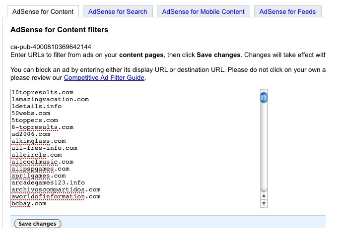 登錄我的Google Adsense,在Adsense Setup(Adsense設(shè)置)–》Competitive Ad Filer (競爭廣告過濾)里面