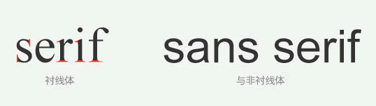 在過去,普遍認為有筆觸裝飾的襯線體,可提高辨識度和閱讀效率,更適合做為閱讀的字體。多用于報紙、書籍等印刷品的正文。非襯線體飽滿醒目,常用做標題或者用于較短的段落。