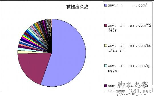 某電影網(wǎng)站,注冊(cè)僅3年,兩百萬(wàn)流量,下文簡(jiǎn)稱電影站,在百度站長(zhǎng)平臺(tái)查詢鏈接后用導(dǎo)出功能下載到本地,排序后生成excel的餅圖,(如圖一)我們可以清晰地看到,該站即便鏈接數(shù)最多的的來(lái)源,所占鏈接比例也沒(méi)有超過(guò)20%,其鏈接數(shù)量分布非常均勻。
