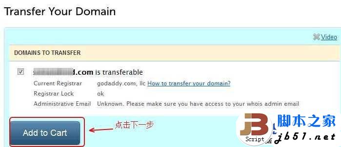 選擇要轉(zhuǎn)移的域名,輸入后如下: