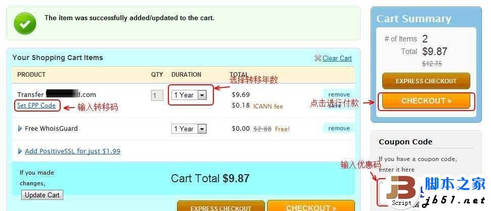 購物車?yán)飼?huì)顯示如今購物車?yán)锏奈锲罚杏蛎?,年?shù),結(jié)賬,還有免費(fèi)的域名隱私保護(hù),哇咔咔