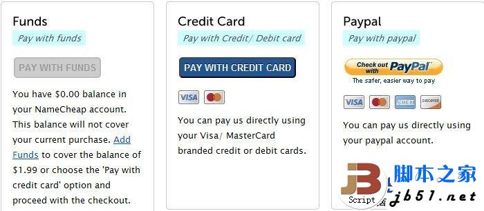 Namecheap支持Namecheap本身余額付款、信用卡、paypal支付,這里肯定選擇paypal支付了,點(diǎn)擊最右邊的paypal支付,如下: