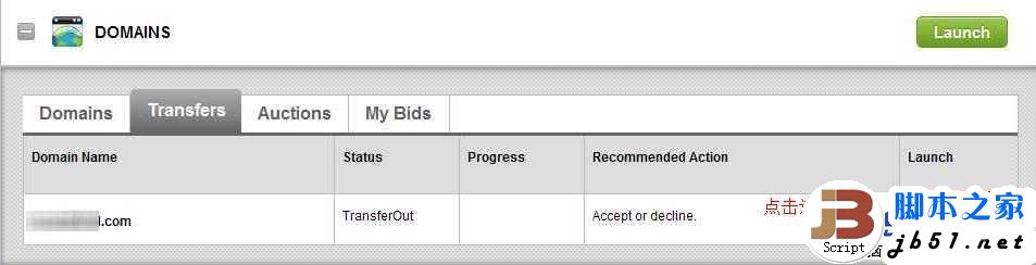 這個(gè)時(shí)候這點(diǎn)加速還不夠,我們再登陸Godaddy的賬戶,點(diǎn)擊正在轉(zhuǎn)移的域名選項(xiàng),如下