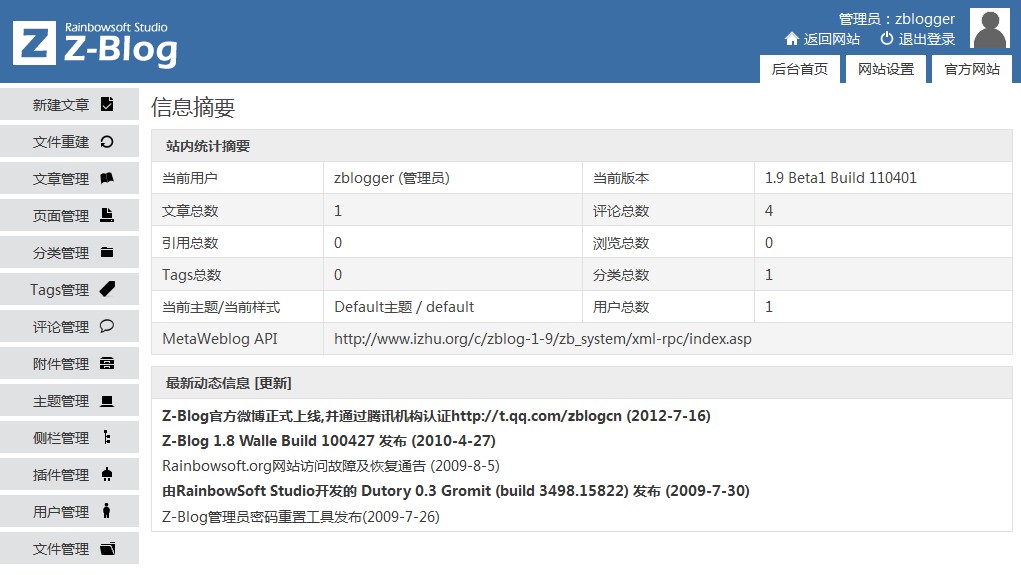 從上次zblog更新至今也有2年多了,一直未見zblog有過更新,雖然去年愚人節(jié)的時(shí)候發(fā)布了一個(gè)版本,但那個(gè)版本真的只是一個(gè)愚人版,很多人從滿腔熱情盼星星盼月亮卻什么都沒盼來,而現(xiàn)在,激動(dòng)人心的時(shí)刻終于到來了,zblog時(shí)隔2年,終于開始了傳說中的版本更新,此次更新的規(guī)模是前所未有的,從內(nèi)核到插件,再到模板,幾乎等于重新開發(fā)了一遍,至于功能上的增強(qiáng)那是必然的,接下來帶著朋友看看新版zblog到底有哪些變化。