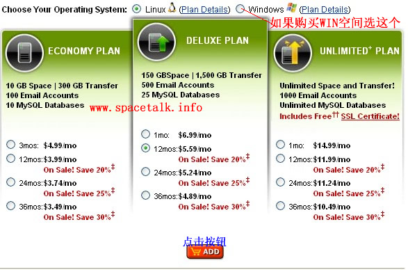 新頁面中,根據(jù)你的需要,選擇你要購買的空間類型。